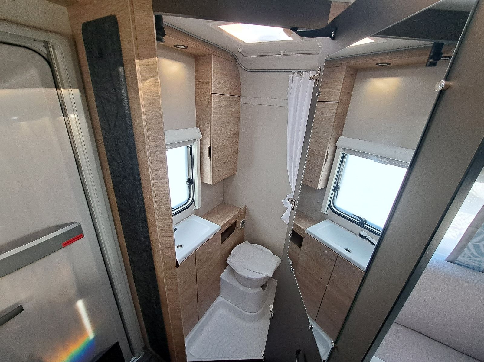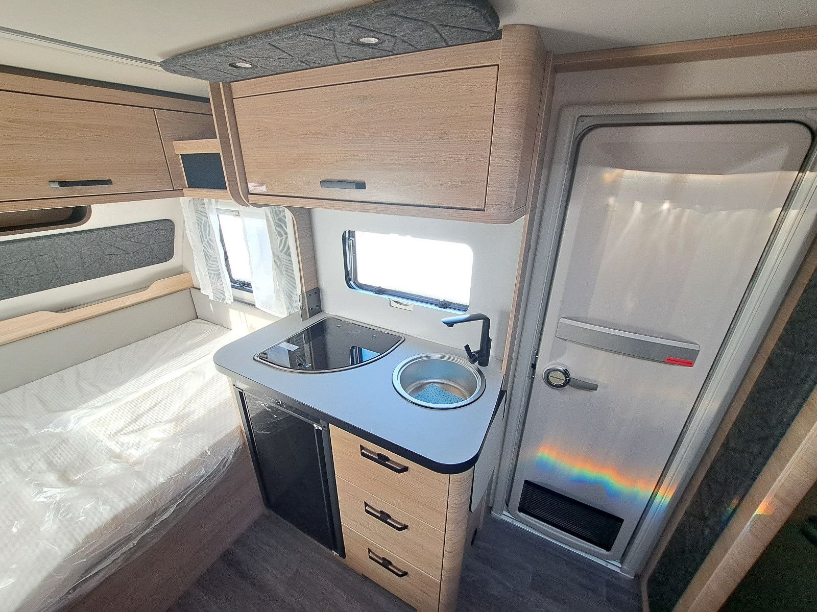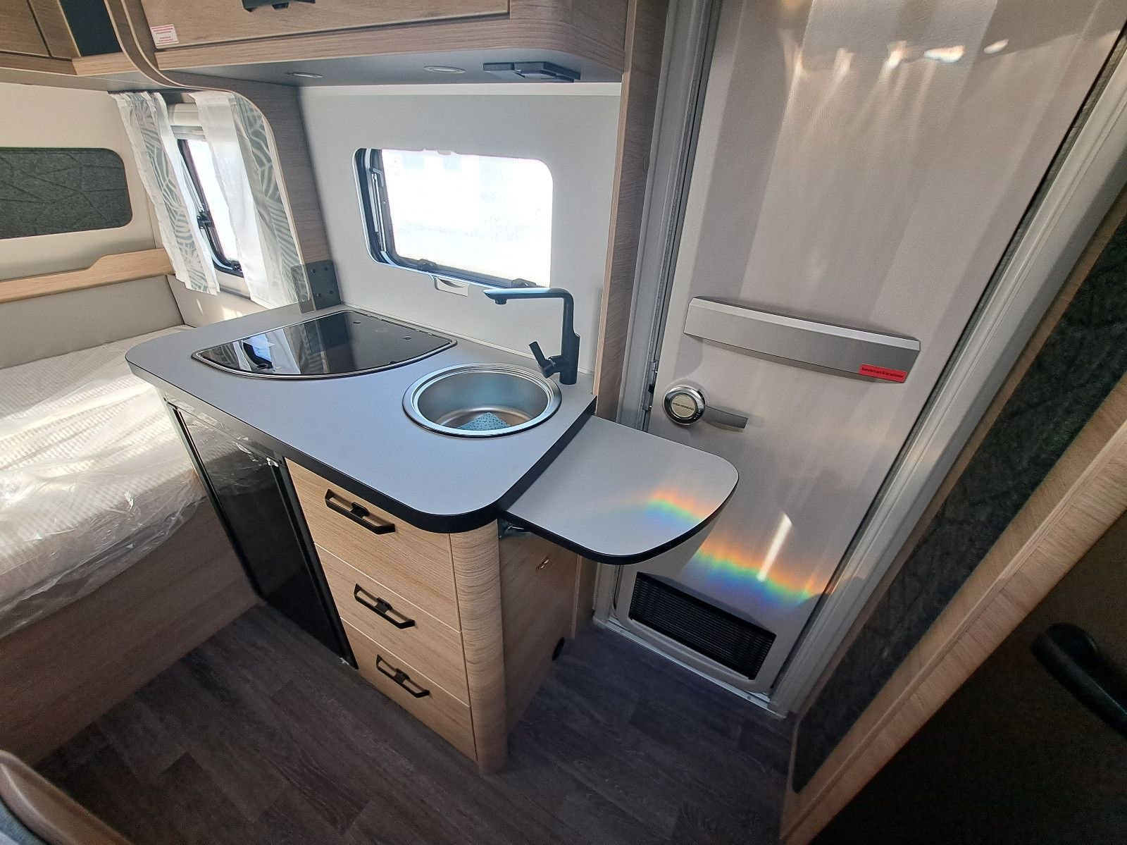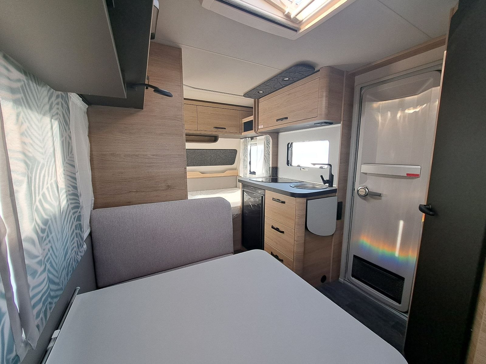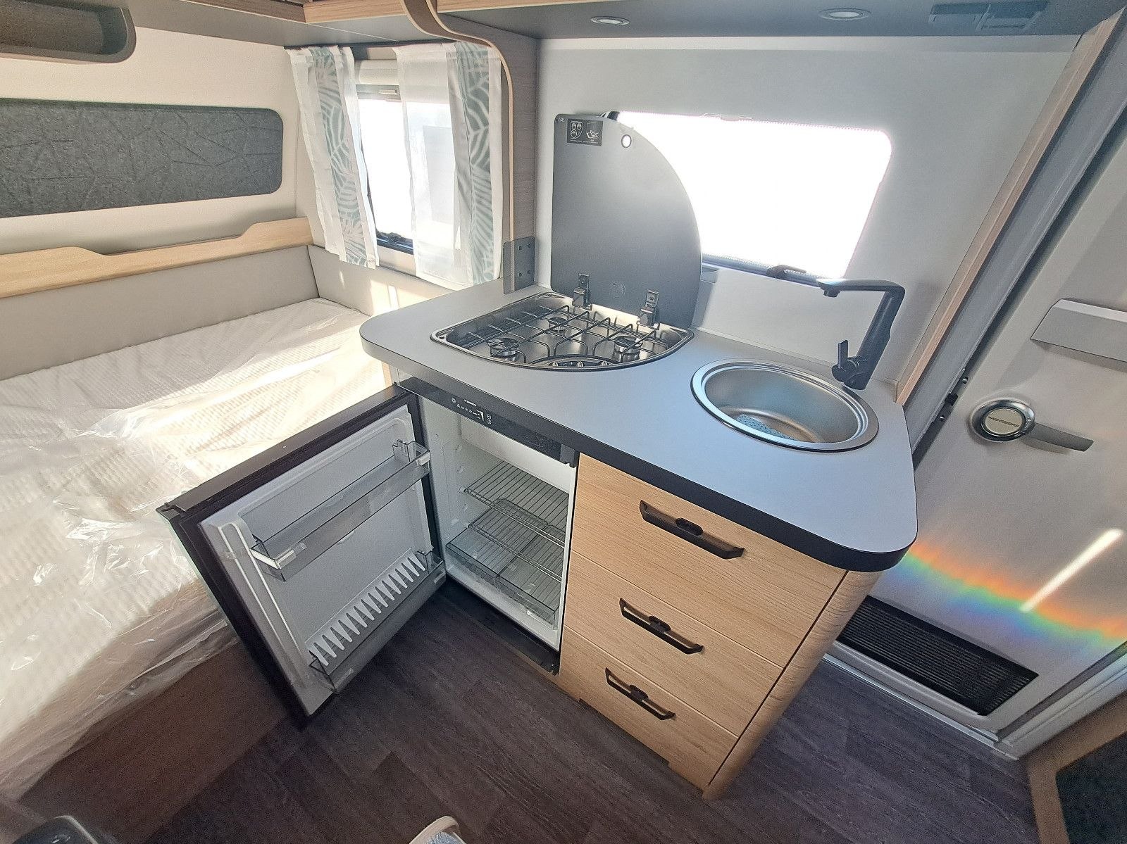 USB, WC, Kuchyňa, Drez, Chladnička, Markíza svetlo, Okno na odvetrávanie , Plynové kúrenie, Nádrž na čerstvú vodu, Bočné sedenie