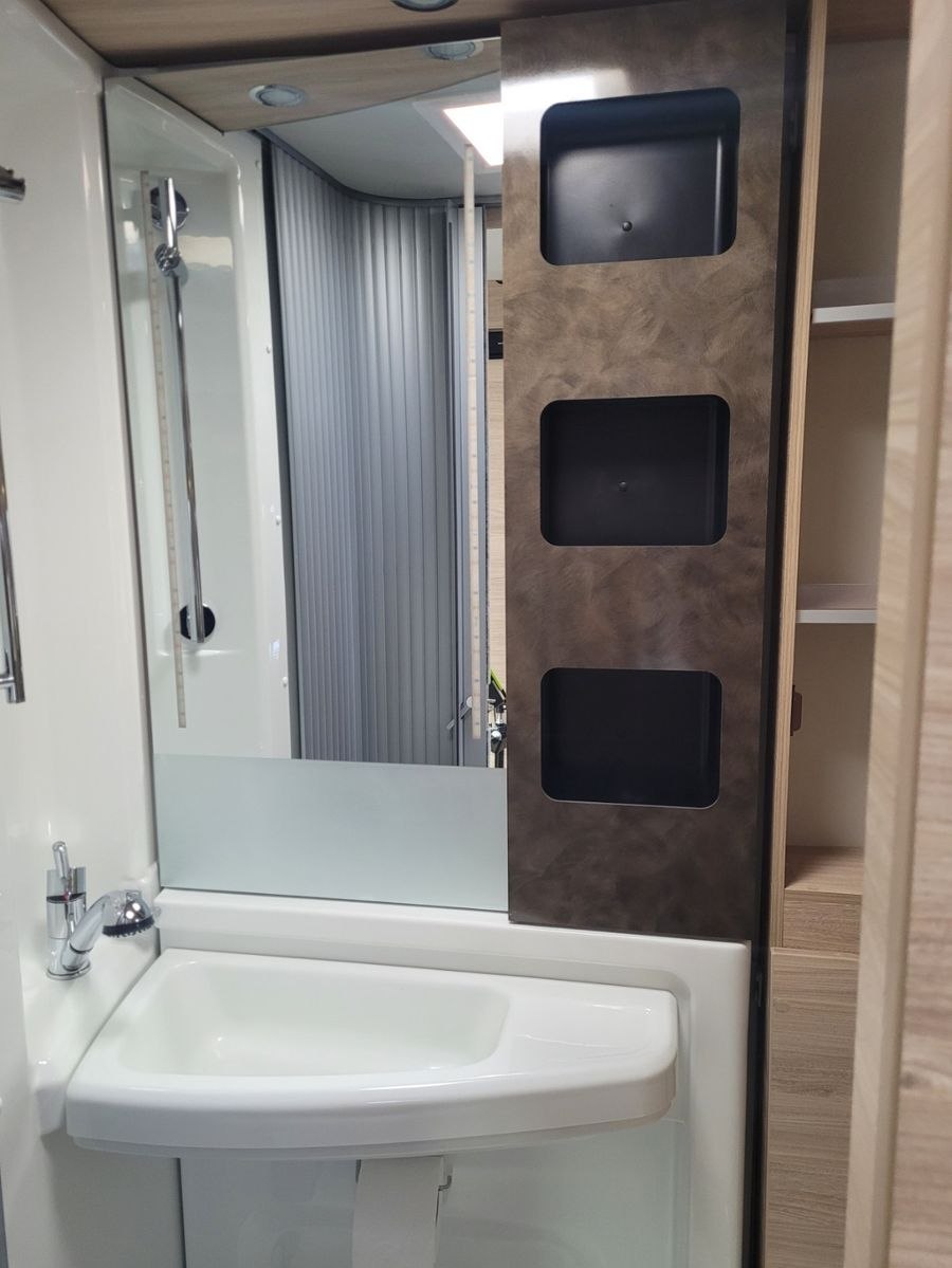 Filter pevných častíc, USB, Zadná garáž, Markíza, Centrálne posedenie, Samostatná sprcha, WC, Chladnička, Zarámované okno, Samostatná klimatizácia, Kuchynský drez